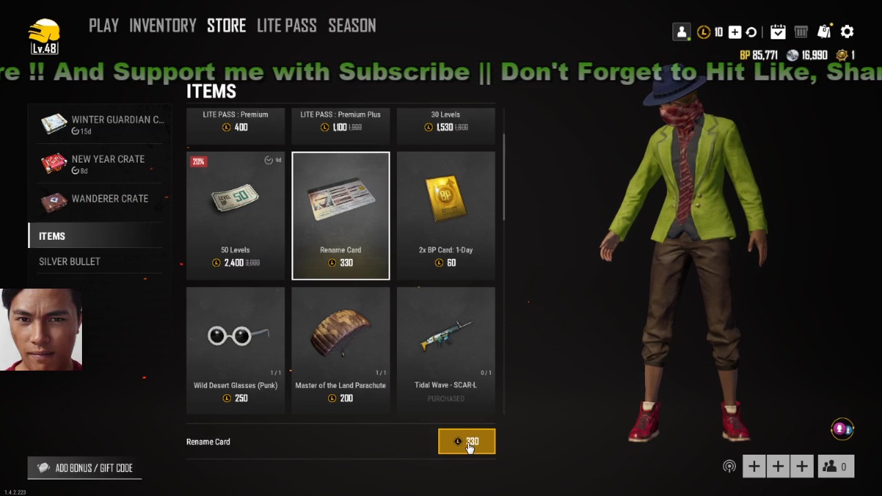 and later you will get a free Rename Card. And use the rename card to change your Litub PUBG nickname.
